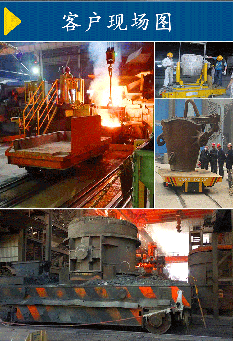 鋼包車是一種專為各大鋼廠、銅廠及冶煉廠、鑄造廠設(shè)計制造的一種運(yùn)輸高溫包體軌道式運(yùn)輸工具,在客戶不同的需求下可以按照包體的大小尺寸、重量和環(huán)境溫度、包體外部溫度等條件量身定制,也可以按照不同需求及客戶方提供的圖紙制作。當(dāng)然,環(huán)境不同鋼包軌道車的制作方式也不同,通常環(huán)境溫度在100度以上的可選用電纜卷筒或拖電纜供電,這兩種供電方式的鋼包軌道平車可耐100-1000度的高溫,電纜線選用強(qiáng)度的耐高溫電纜,其電機(jī)、減速機(jī)及電控箱都采取隔熱防護(hù)措施,以避免在高溫環(huán)境下受損,影響臺車的正常使用。