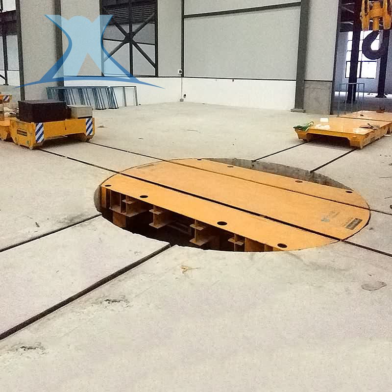 軌道轉盤車是車間鐵軌轉彎或者換軌道旋轉臺及用于對接換軌道的圓形電動轉盤,可實現360度任何一個角度停止,也可以實現也可實現井型十字交叉運行